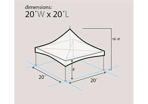 With 400 square feet of space, this tent comfortably accommodates up to 50 guests depending on layout, making it perfect for both intimate and larger gatherings.